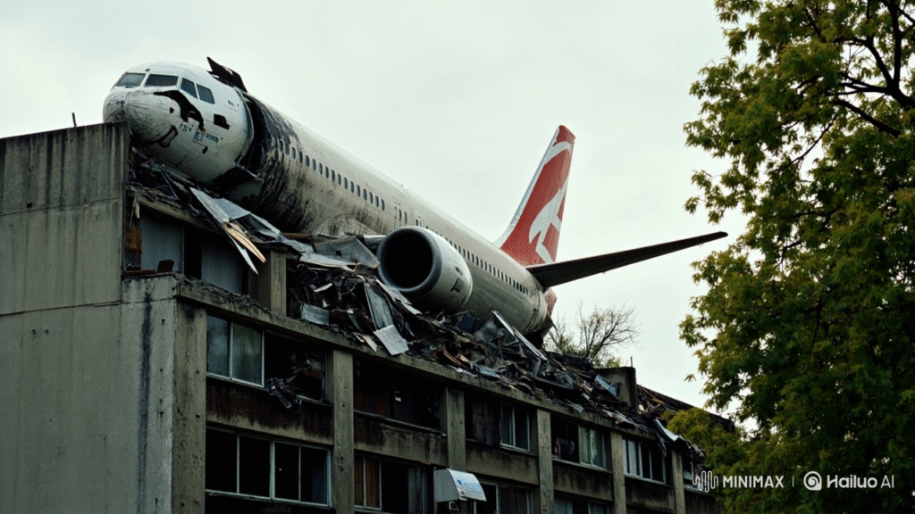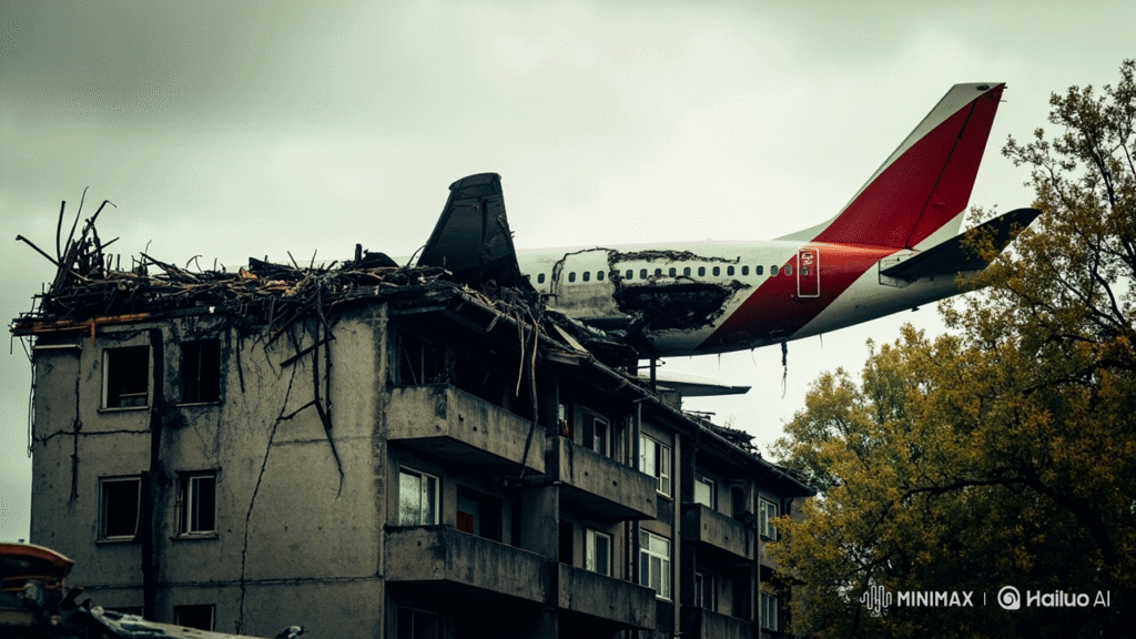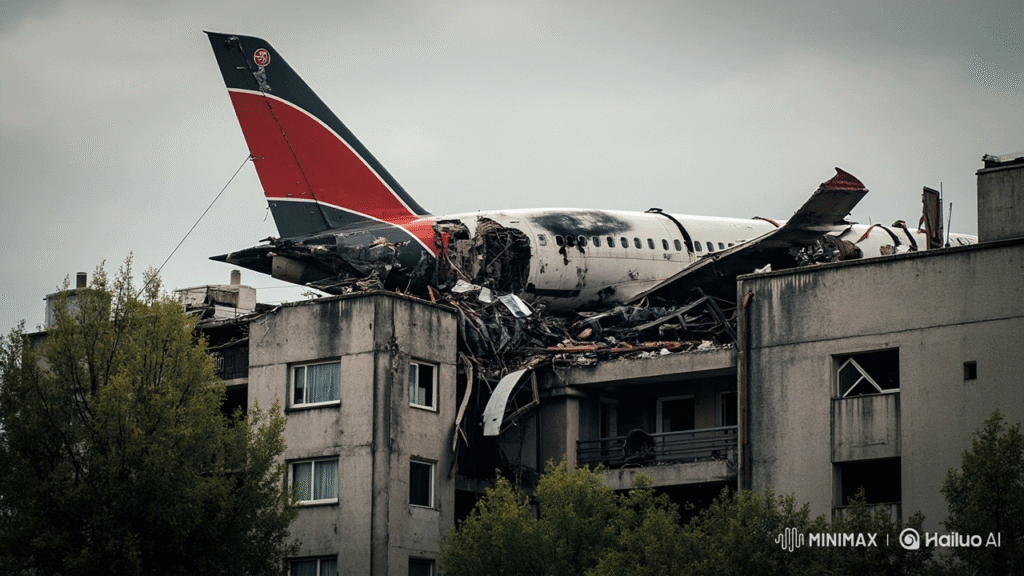 Photos from the site show blackened aircraft parts, including the wing and tail, embedded in buildings. Emergency responders worked tirelessly to recover bodies and clear wreckage while keeping bystanders at a distance.